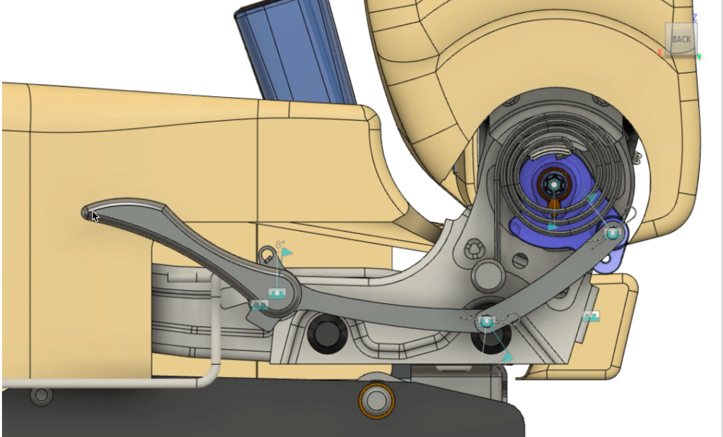 Provided a car seat schematic, my team designed a compatible handle assembly and switch cover. Our goal was to develop an assembly with a factor of safety greater than 2 and a low manufacturing cost.