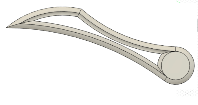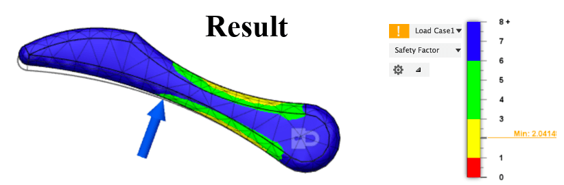 In an effort to reduce the mass while maintaining the factor of safety, I used topography optimization to redesign the handle with a slimmer but more reinforced profile.
